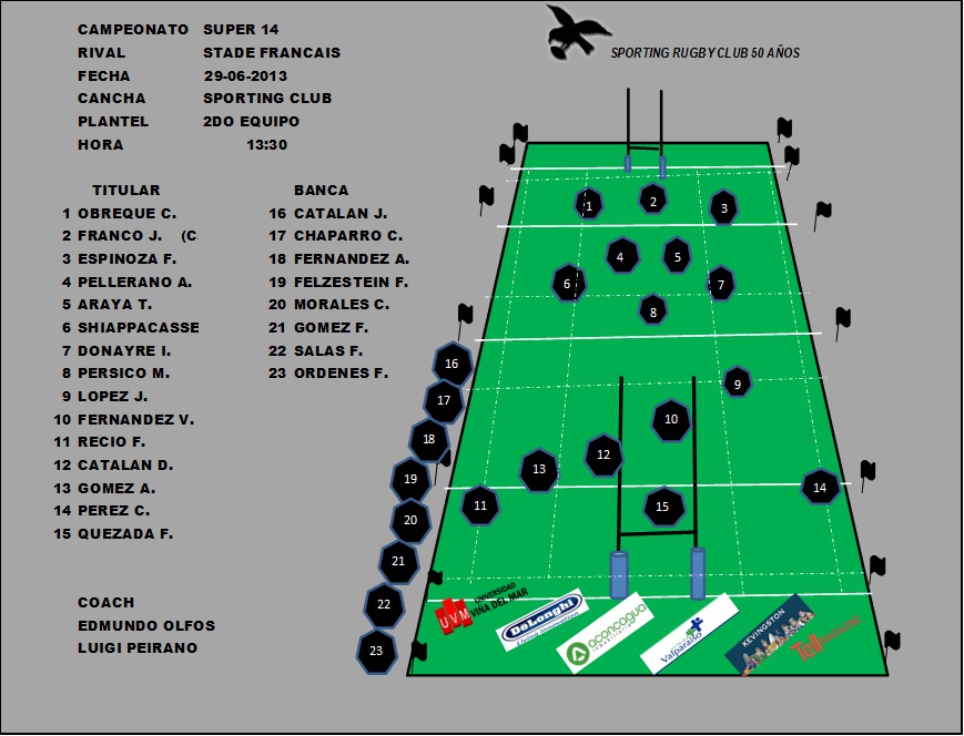ALINEACION SPORTING VS STADE 2DO EQUIPO